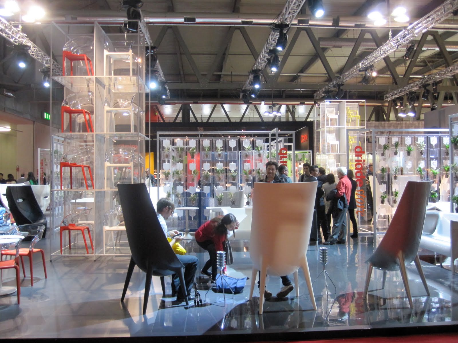 El stand de Driade dentro de la feria llama mucho la atención por sus proporciones y el predominante plástico en sus diseños. Cada feria combina astutamente variaciones con estrenos, materiales nuevos y procesos, y diseñados de todas partes del mundo.