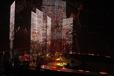 Un alto contenido político e interactivo.. fue impresionante cuando de repente empezó una animación de un mundo girando y a un lado todos los vuelos que estaban saliendo simultáneamente por todo el mundo.. (¡salio uno de México!) La sincronización era magnifica, acompañando perfectamente cada nota que tocaba el grupo. Dependiendo del país y el idioma son los mensajes que ponen, lastima que los vi en la parte de Bélgica que hablan holandesa ¡asi que no entendí nada! Pero bueno en general un increíble show y gran parte fue por UVA.
